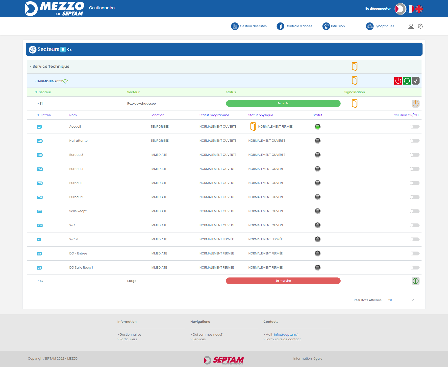 • Affichage de l’historique par secteur et de l’état de la centrale.