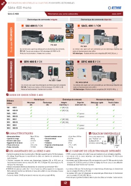• Solutions compactes des versions avec électroniques intégrées (SAI ou SE1I) pour un • Les moteurs avec FdC électroniques (SE) sont équipés de la carte PIC 500 associée à la boîte