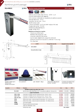 VELA INDUS Barrière levante grand passage 230 V à fourche