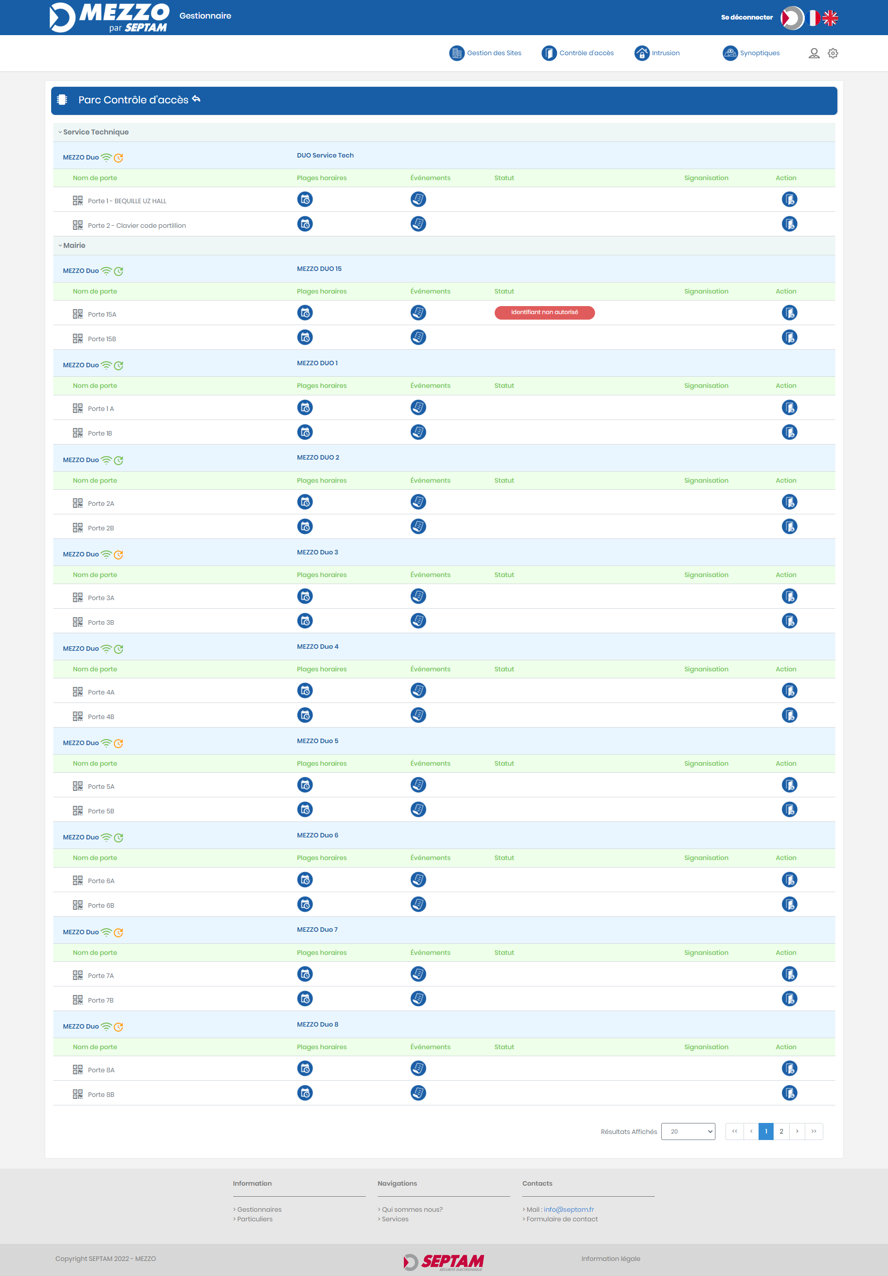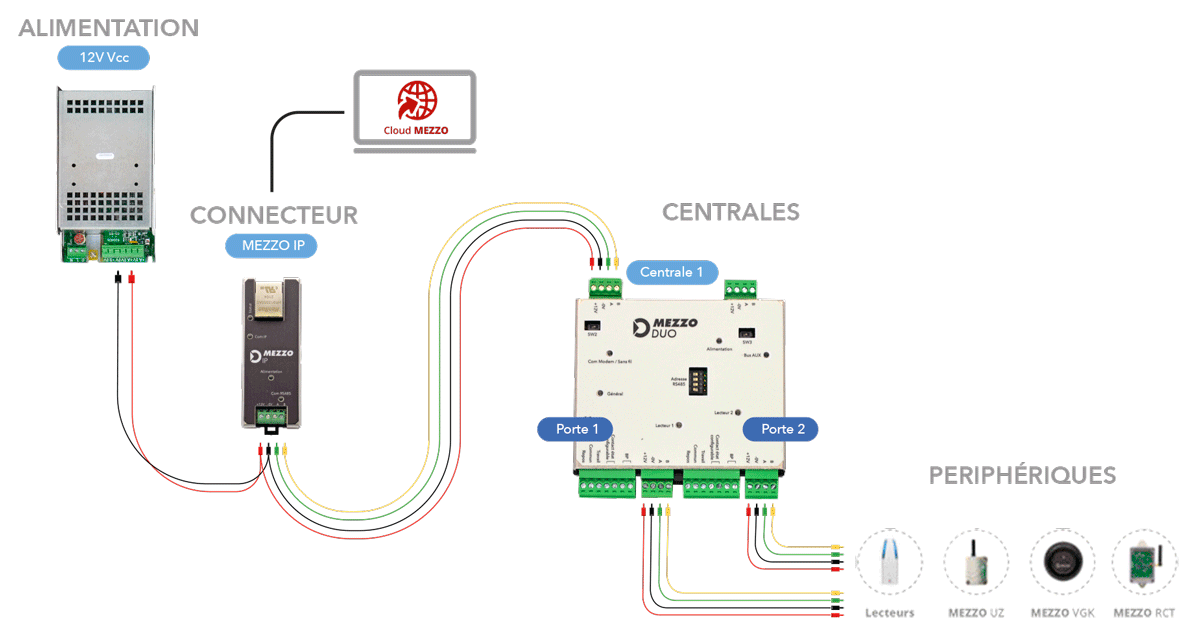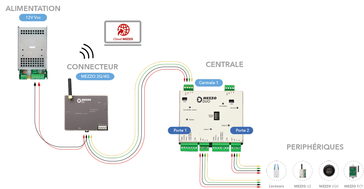 Le module est connecté aux centrales du contrôle d’accès et la gestion est réalisée directement sur l’interface MEZZO CLOUD.