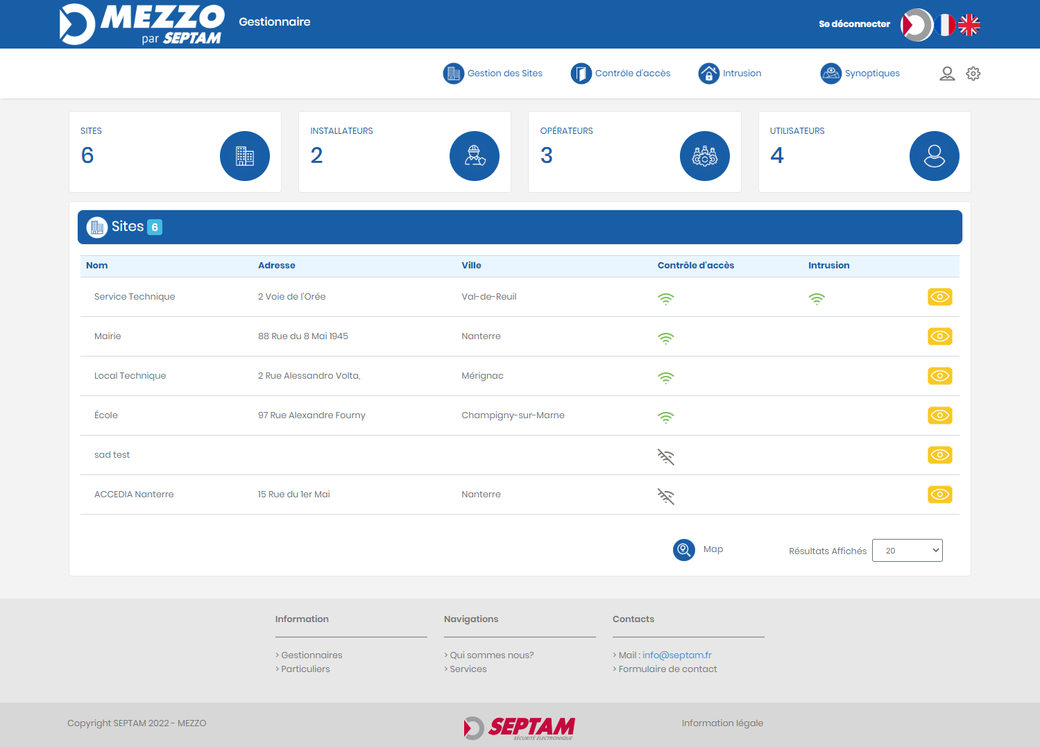 MEZZO permet d’unifier la gestions de vos équipements d’alarme intrusion, de contrôle d’accès, de vidéosurveillance, vos portiers vidéo et claviers codés, vos automatismes de portes, etc… le tout grâce aux services MEZZO Cloud, sécurisés et centralisés.