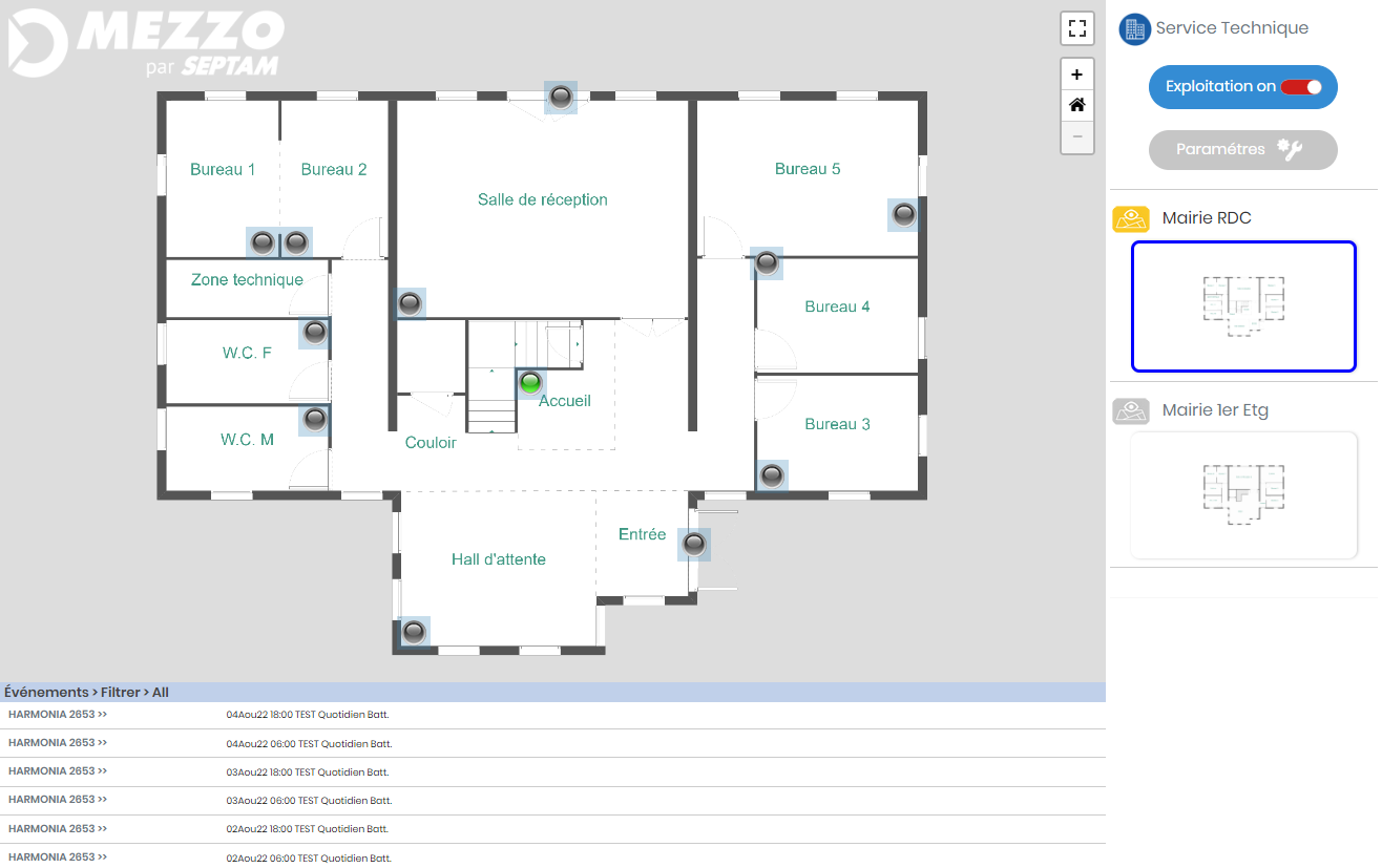 En plus de pouvoir connecter jusqu’à 15 centrales MEZZO DUO, le modem assure la centralisation des données collectées et la gestion des accès depuis un portail unique, l’interface web.