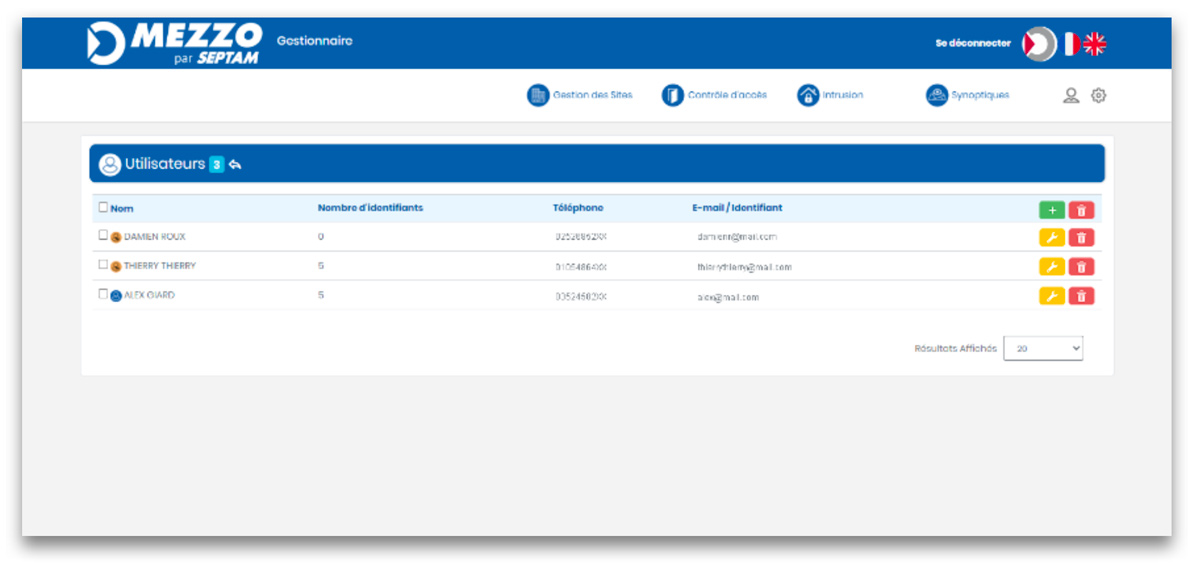 Le module est connecté aux centrales du contrôle d’accès et la gestion est réalisée directement sur l’interface MEZZO CLOUD.