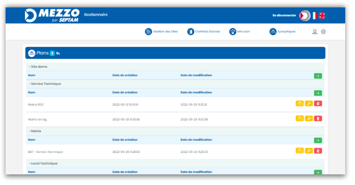MEZZO permet d’unifier la gestions de vos équipements d’alarme intrusion, de contrôle d’accès, de vidéosurveillance, vos portiers vidéo et claviers codés, vos automatismes de portes, etc… le tout grâce aux services MEZZO Cloud, sécurisés et centralisés.